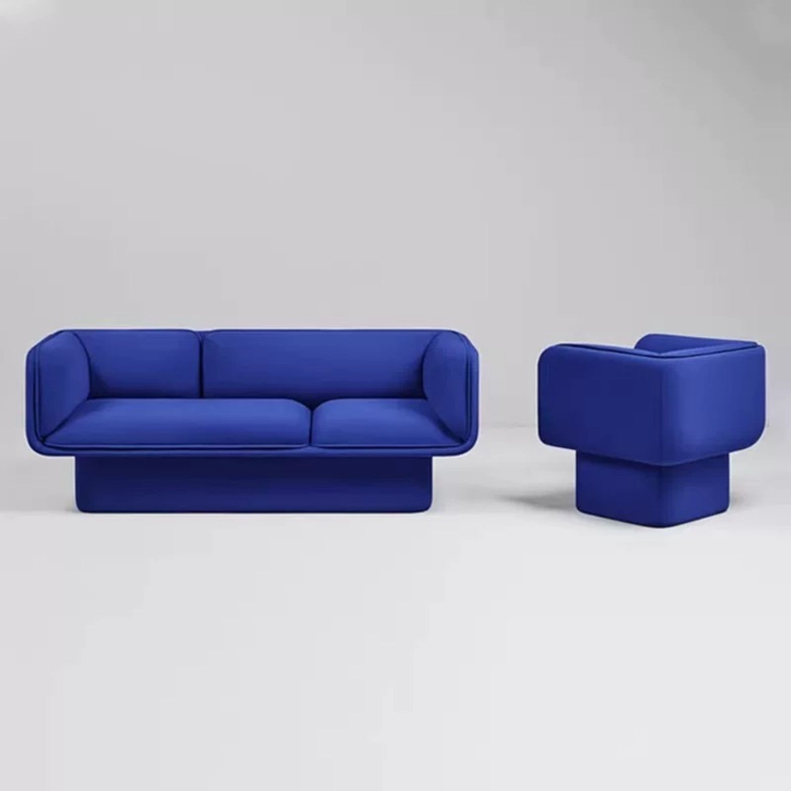 Make a statement with this bold blue modern sofa set, featuring a boxy, geometric design and deep, saturated color. The clean lines and robust silhouette create a striking focal point, while the high-density foam cushions provide lasting comfort and support. Ideal for modern homes, office lounges, or creative workspaces, this set brings a pop of color and architectural interest to any environment, blending style with functionality.