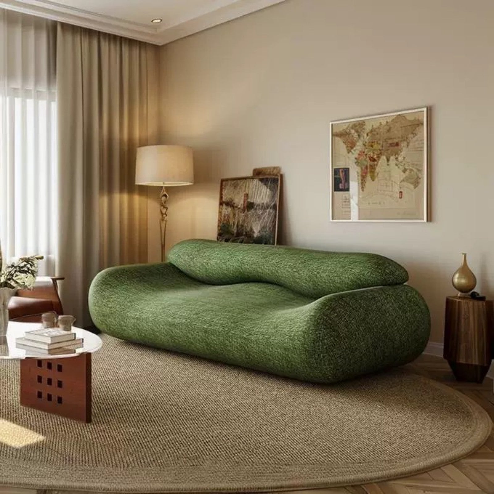 Create a serene retreat in your home with this modern organic green sofa, shaped with soft, flowing lines and a minimalist silhouette. The sculptural form is upholstered in an inviting green fabric, offering both visual harmony and cozy comfort. Perfect for Scandinavian, Japandi, or minimalist interiors, this sofa adds a sophisticated, nature-inspired touch to your living space. It’s an excellent choice for those who appreciate contemporary design and tranquil atmospheres.